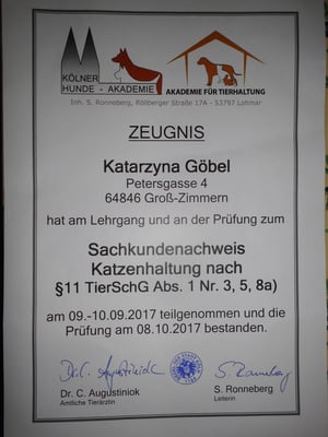 Seit August 2013 züchten wir und ab den 20.08.2018 sind wir bei Katzen Freunde Germania e.V. eingetragen.