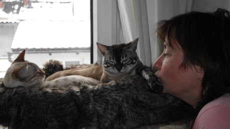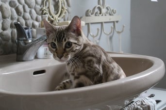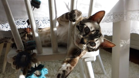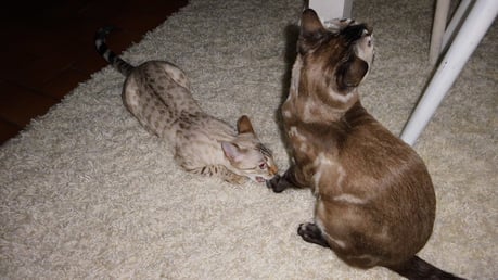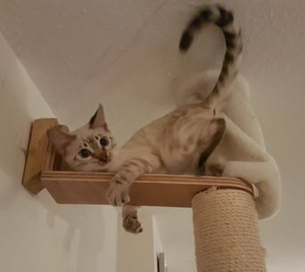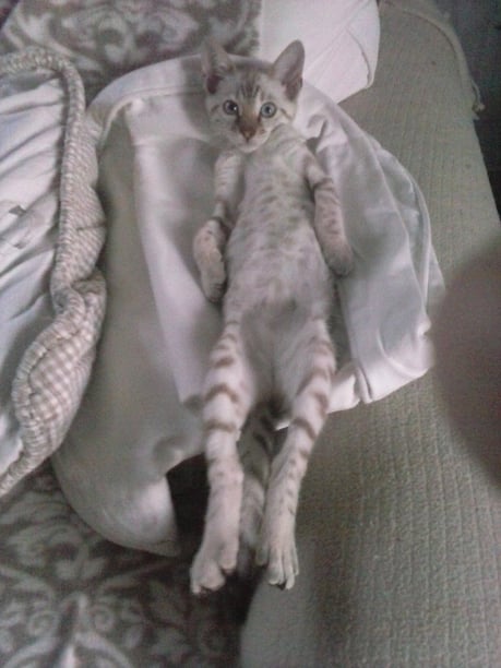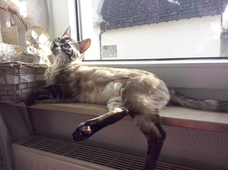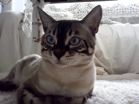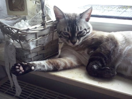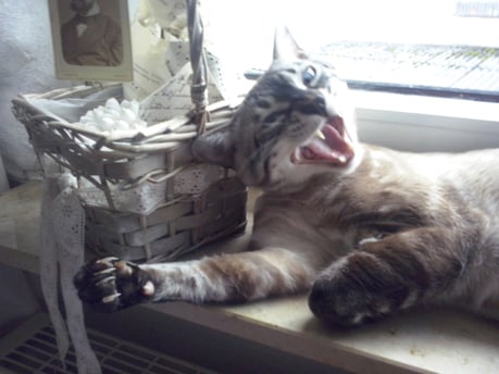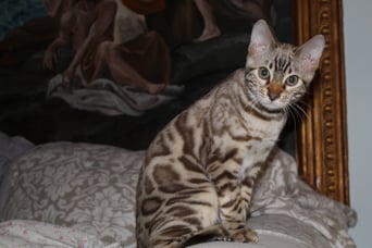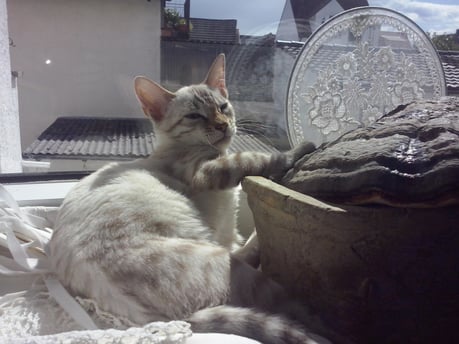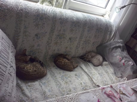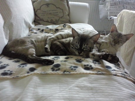 ...ich weiss nicht...hat sie uns gekauft weil wir Bengalen sind, oder weil wir zu Ihren weißem Shabby Chic passen???...